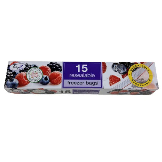 TidyZ Freezer Bags are a pack of 15 resealable bags designed to keep your food fresh and protected in the freezer. These high-quality bags feature a resealable closure that ensures a tight seal, helping to prevent freezer burn and spoilage.