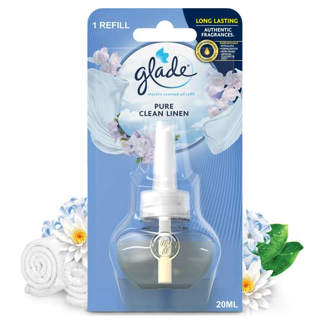 Description: Freshen up your living space with the Glade PlugIns Scented Oil Refill in the Clean Linen fragrance. This 20ml refill brings the refreshing scent of line-dried laundry into your home, providing a continuous, clean aroma that enhances the comfort of your environment. Designed for use with any Glade PlugIns Scented Oil Warmer, it's a convenient way to maintain a welcoming atmosphere with minimal effort.