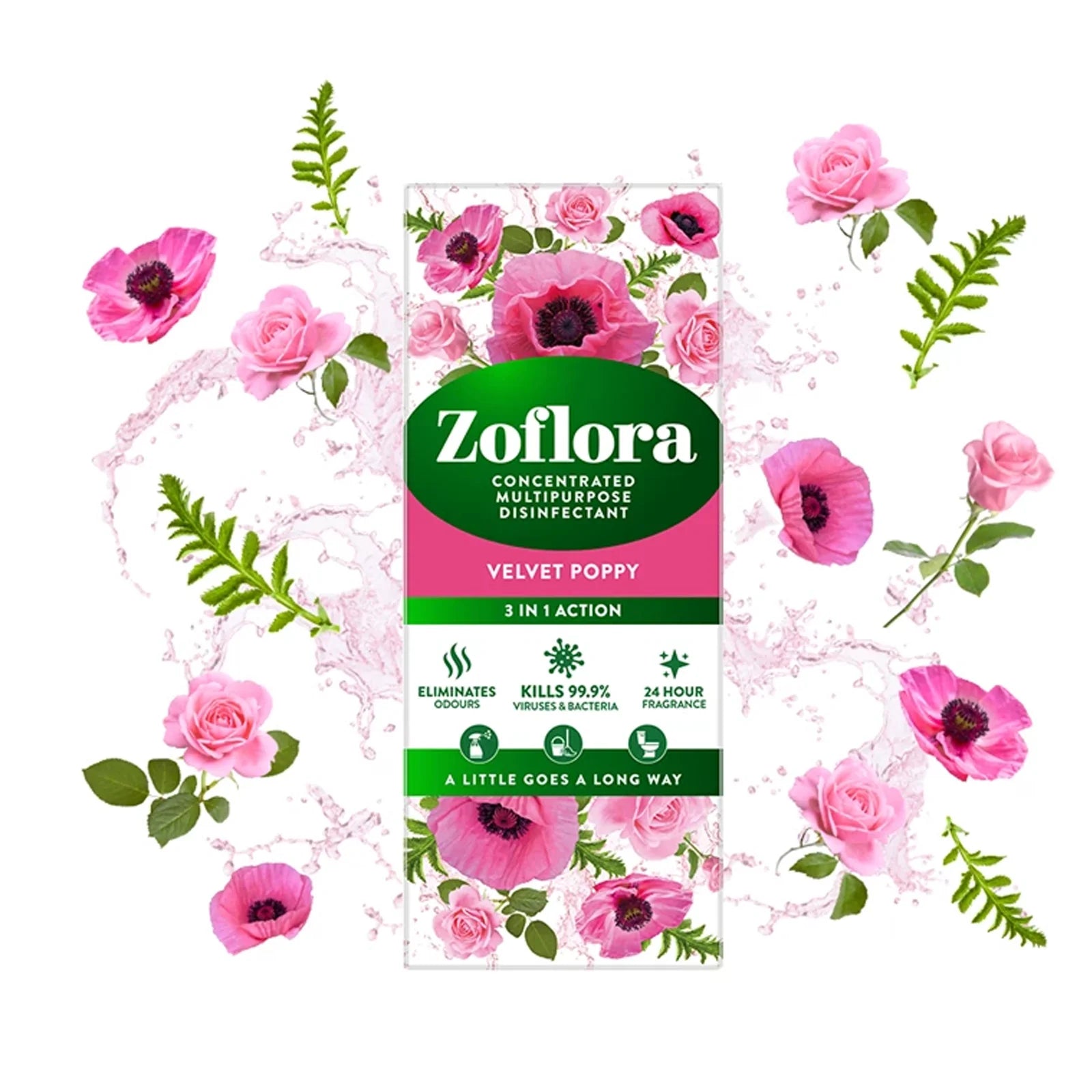 Note: Zoflora Velvet Poppy 500ml is not just a cleaning product; it's an aromatic journey, bringing the luxurious scent of velvet poppies into your home while ensuring surfaces are clean and germ-free.